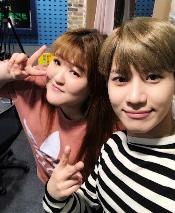 공개된 사진 속에는 이국주가 진행하는 라디오에 샤이니 태민이 출연, 함께 셀카를 찍은 모습이다. 태민은 신곡 'MOVE'를 홍보했고 이국주는 이 곡의 커버 댄스를 찍어 SNS에 업로드 하겠다고 약속했다.