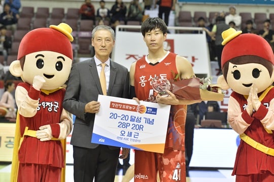 KBL이 지난 15일 KGC와 전자랜드 경기에서 역대 국내선수 2호로 '20-20(28득점-20리바운드)'을 기록한 KGC 오세근(30, 200cm)에게 26일 안양실내체육관에서 열리는 KGC와 SK의 경기에 앞서 기념상을 시상했다.
