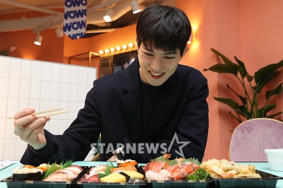 스타뉴스는 최근 '밥한끼합시다' 코너를 통해 서울 중구 FNC WOW 카페에서 이종현을 만났다. 평소 낚시를 즐기는 그를 위해 신선한 생선 초밥을 준비했다. 빠듯한 일정 때문에 아직 점심을 먹지 못했다는 그는 초밥을 한입에 넣고는 먹음직스럽게 꼭꼭 씹어 먹었다.