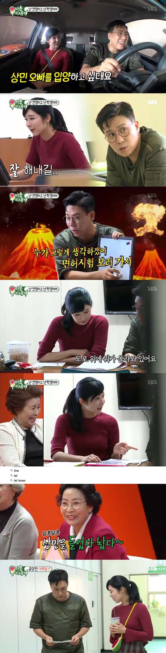 이날 사유리는 운전면허 필기 시험을 공부하기 위해 이상민의 집을 찾아 왔다. 이상민은 사유리에게 맞춤 교육을 시키며 합격을 기원했다.