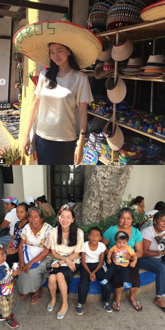 공개된 사진 속에는 멕시코 주민들 사이에 앉아있는 장윤주의 모습이 담겨있다. 또 장윤주는 멕시코의 전통 모자인 솜브레로를 쓰고 카메라를 바라보며 환하게 웃고 있다.
