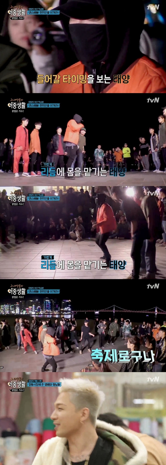 가수 태양이 자신의 신분을 숨기고 부산 시민들과 댄스 배틀을 벌였다.