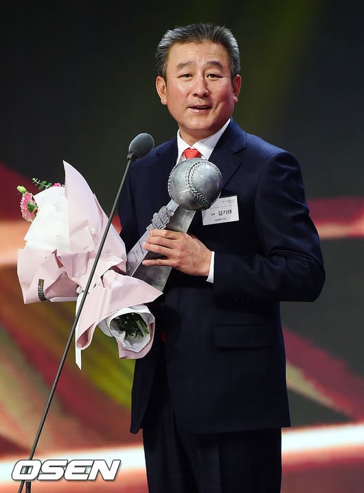 수상 후 김기태 감독은 "신임 조계현 단장, 선수단, 코칭스태프, 무엇보다 KIA를 사랑하는 팬분들께 감사드린다. 건방져졌다는 소리 안 듣도록 초심 잃지 않고, 프로야구에 보탬이 될 수 있도록 노력하겠다"고 소감을 밝혔다.