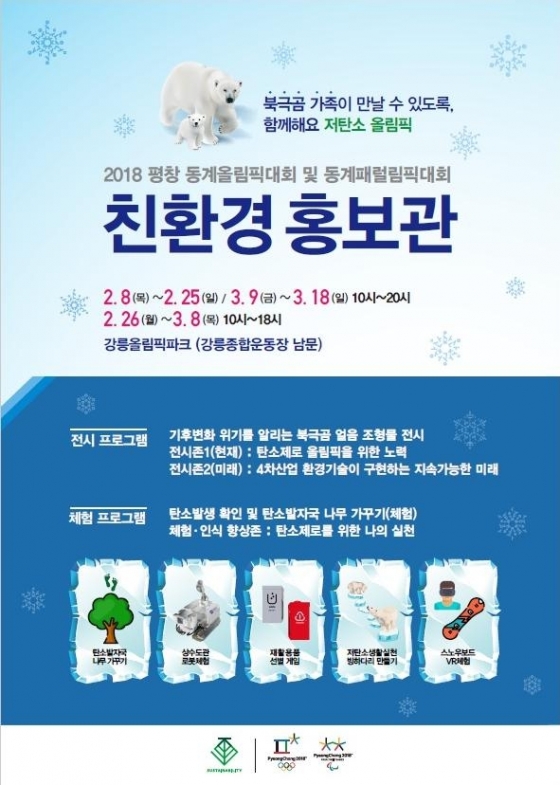 평창올림픽 조직위원회가 8일부터 3월 18일까지 강릉올림픽파크에서 친환경 홍보관을 운영한다고 6일 밝혔다.