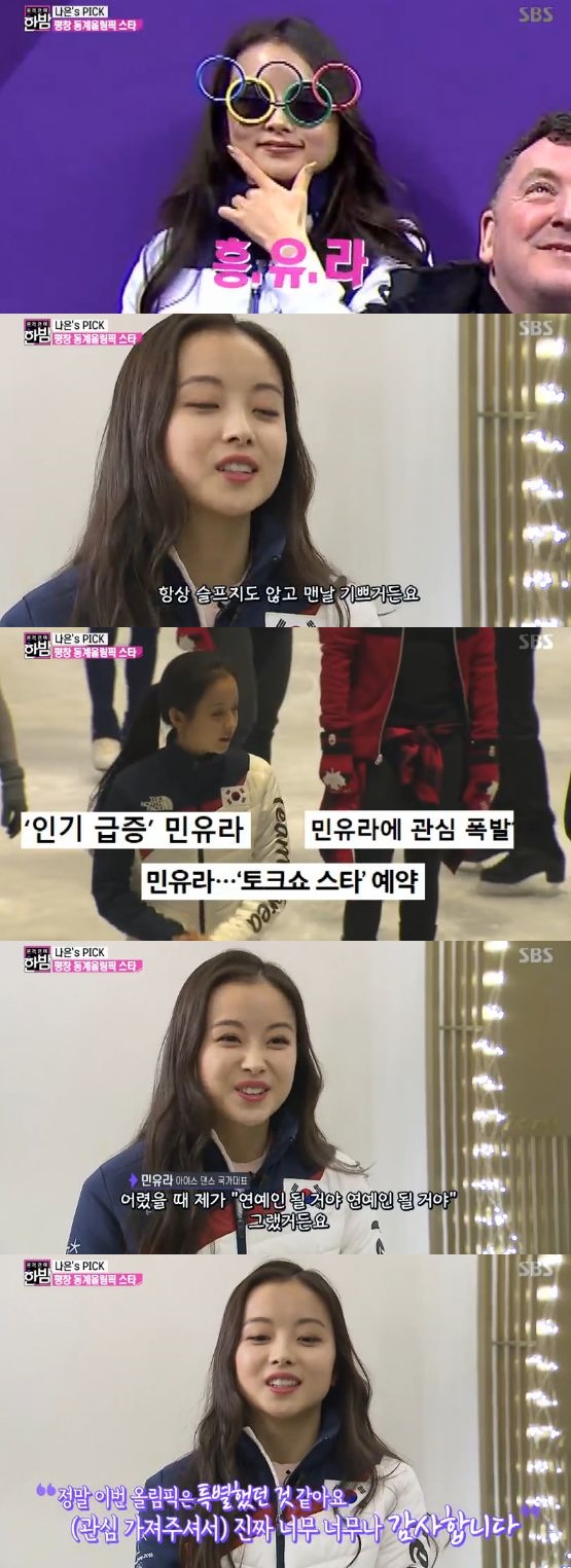 민유라는 자신을 향한 뜨거운 관심에 대해 "어렸을 때 '연예인이 될 거야'라고 말하고 다녔는데 진짜 연예인이 됐다"라며 "정말 이번 올림픽은 특별했던 것 같다. 관심 가져주셔서 정말 감사하다"고 팬에 고마운 마음을 전했다.