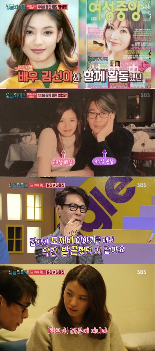 심혜진은 "(윤상이)처음엔 어려웠다. 나이 차도 7살 차이가 났다. 오빠라고 해야 하나, 아저씨라고 해야 하나 고민했다"라고 말했다. 이어 "보기보다 굉장히 잘해주시더라"라며 "의외의 모습에 내가 넘어갔다. 날카롭게 생겼는데 웃으면 얼굴이 무너지는 얼굴이다"고 토로했다.