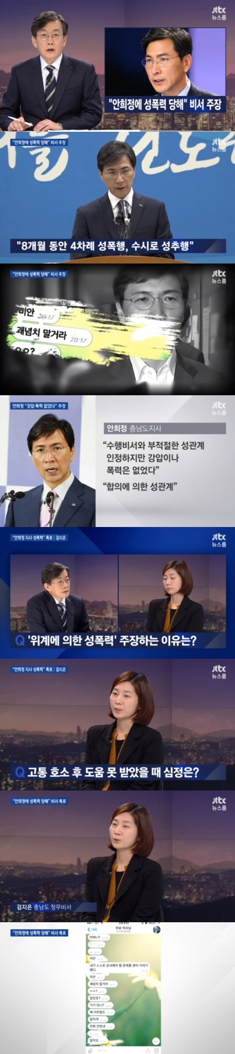 이와 관련 안희정 충남 지사는 "수행비서와 부적절한 관계는 인정하지만 강압이나 폭력은 없었다"라며 "합의에 의한 성관계"라고 주장했다.