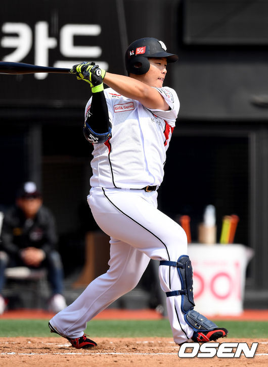 이날 강백호는 대타로 나왔지만 뛰어난 활약을 펼쳤다. 1-3으로 뒤진 7회말 1사 상황에서 윤석민 대신 타석에 들어선 강백호는 좌중간을 가르는 2루타를 때려냈다. 후속 황재균의 좌월 솔로 홈런으로 홈을 밟아 3-3 동점에 기여했다.