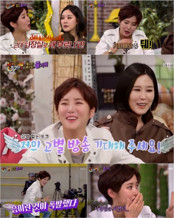 이에 한현남은 “근데 화장실로 왜 부르냐고”라며 이야기에 디테일을 더해 눈길을 사로잡았다. 한현남은 채리나가 당시 상황을 순화시킨다고 발끈하면서 본인에게 했던 거침없는 발언들을 재현해 폭소를 유발했다. 더욱이 한현남은 “화장실 안이 아니라 화장실 변기 안이었다. 그때 나도 꼭 가수가 되어야겠다고 마음 먹었다”고 덧붙였다.