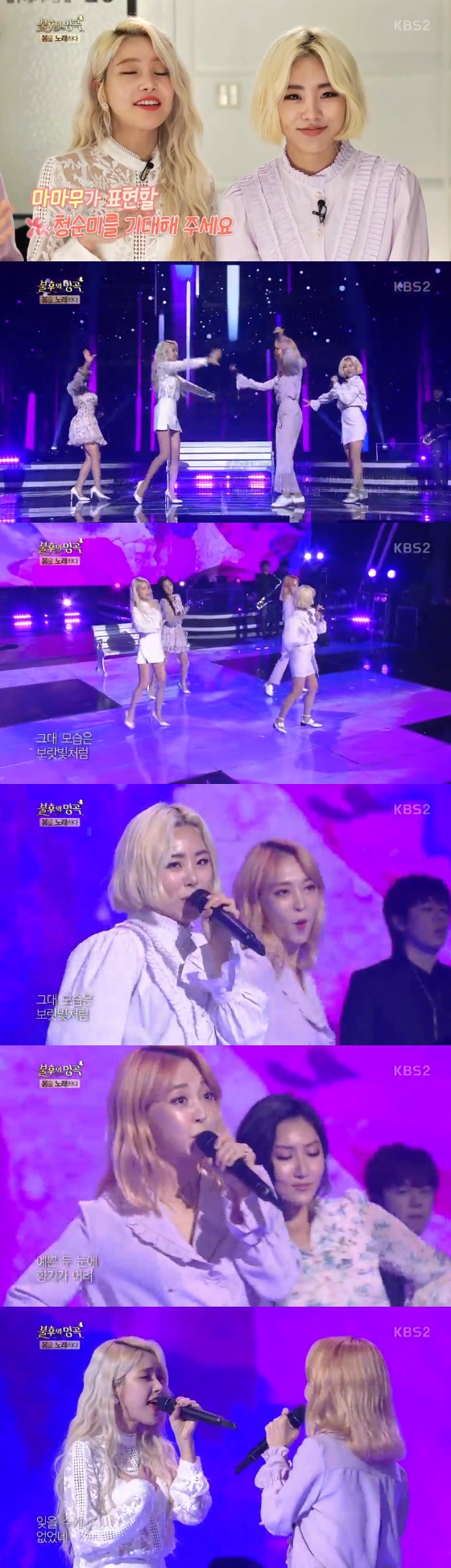 이날 방송에서 마마무는 강수지의 '보라빛 향기'로 무대에 섰다.