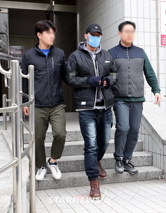 지난달 27일 오전 서울 양천구 서울남부지방법원에서 래퍼 정상수가 구속 전 피의자 심문(영장실질심사)을 마치고 법원을 나가고 있다./사진=뉴시스
