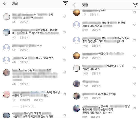네티즌들은 정상수의 SNS에 비난을 쏟아냈다. 가장 최근 게시물의 댓글창을 보면 차마 입에 담기 힘든 욕설로 가득 차 있다. "상수야 XXX에서 맨날 술 취해서 XXX 놀던데" "범죄자 swag" "이번에야말로 구속 기원한다" "사회 악이다 이정도면" 등 수위 높은 발언들이 이어졌다.