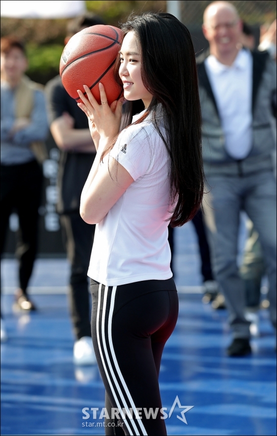 그룹 에이핑크 손나은이 25일 오후 서울 성동구 응봉체육공원에서 열린 아디다스와 서울시가 함께하는 사회공헌 프로젝트 '스포츠로 세상을 변화시키다' 행사에서 포즈를 취하고 있다.