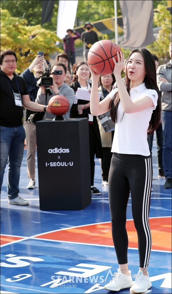 그룹 에이핑크 손나은이 25일 오후 서울 성동구 응봉체육공원에서 열린 아디다스와 서울시가 함께하는 사회공헌 프로젝트 '스포츠로 세상을 변화시키다' 행사에서 시투하고 있다.
