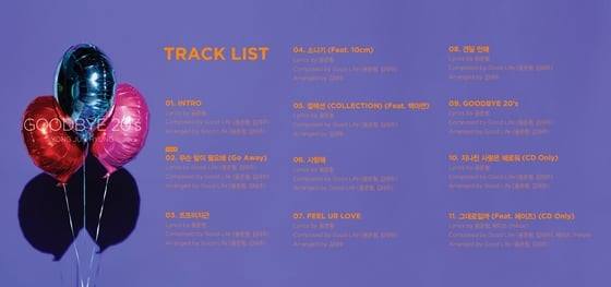 타이틀곡 외에도 영화 속 연인들의 헤어지는 모습을 용준형 특유의 노랫말로 풀어낸 '뜨뜨미지근', 용준형의 담백한 보컬과 랩에 10cm 권정열의 매력적인 음색이 더해 탄생한 '소나기', 청량한 보컬로 사랑받는 백아연이 피처링을 맡은 '컬렉션', 사랑에 빠진 남자의 마음을 솔직 담백하게 담아낸 '사랑해'를 비롯하여 '견딜만해'와 앨범 타이틀과 동명인 'GOODBYE 20's'가 담겼다.