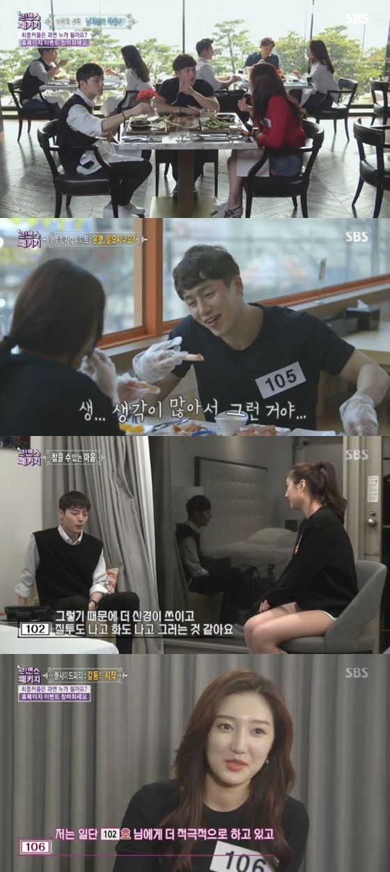 예능프로그램 '로맨스 패키지'에서 106호 여성의 마음을 얻기 위한 102호와 105호 남성의 신경전이 돋보였다.