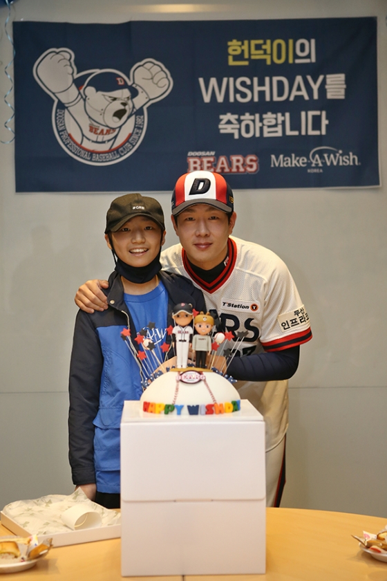 그렇게 힘들게 투병 중인 김헌덕 군에게 가장 큰 힘이 되는 선수. 두산 박건우였다. 두산 팬인 그가 박건우를 좋아하는 이유는 바로 "공격과 수비가 모두 빼어나기 때문"이라고.