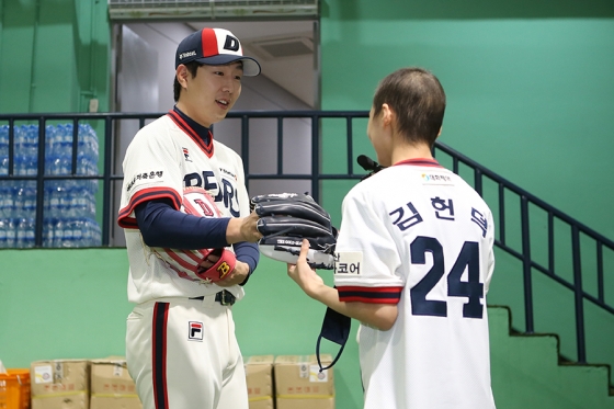 사실 김헌덕 군은 밖에서 오랫동안 돌아다닐 수 있는 몸 상태가 아니다. 때로는 계속 앉아있는 것도 힘든 상황이라고 한다. 그래도 이날 김헌덕 군은 자신의 꿈을 이루기 위해 잠시 아픈 것도 잊고 야구장을 찾았다. 그런 그에게 박건우는 평생 잊지 못할 감동을 선사했다.