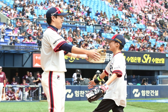 13일 잠실구장. 넥센-두산전. 특별한 손님이 시구자로 나섰다. 급성 림프구성 백혈병과 싸우고 있는 김헌덕(12·남) 환우였다.