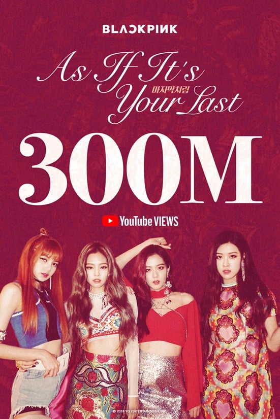 '붐바야'에 이어 '마지막처럼'도 3억 뷰를 돌파하며, 블랙핑크는 국내 여성 아티스트 사상 최초로 2편의 3억대 뮤직비디오를 보유하는 대기록도 보탰다.