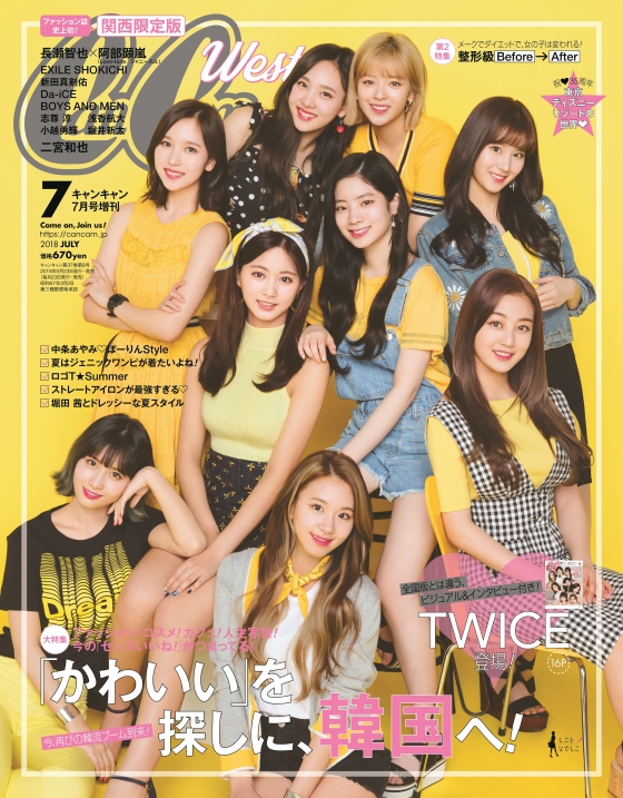 아울러 트와이스는 23일 일본서 발매되는 유명 패션지 'CanCam' 7월호의 전국판과 칸사이 한정반 등 두 권의 표지 모델을 장식해 화제다. 특히 일본 여성 패션지로는 처음으로 전국판과 함께 칸사이 한정반이 동시 발매되는 가운데 모두 트와이스가 표지를 장식, 현지에 뜨거운 트와이스의 인기를 실감케 하는 사례로 인정받고 있다. 매거진이 발매되는 23일부터 약 일주일간 도쿄 하라주쿠와 오사카의 아메리카무라 등 대표적 패션 거리에 트와이스의 'CanCam' 포스터가 등장할 예정이다.