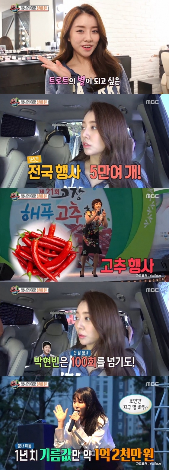 이어 설하윤은 "박현빈 선배는 한달에 100개 정도 하신다. 동에 번쩍 서에 번쩍 한다"라고 밝혀 놀라움을 전했다.