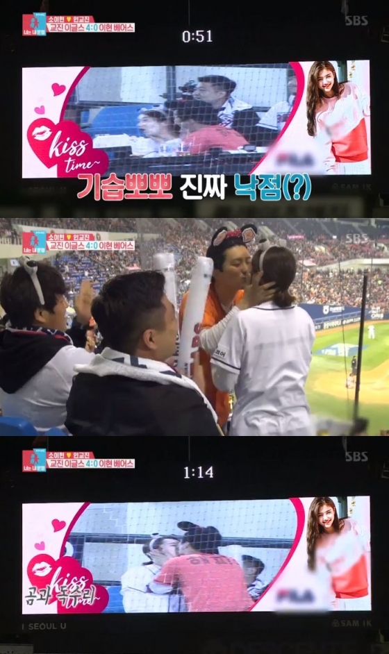 이날 소이현은 계속해서 이기는 한화와 약올리는 인교진에 열받은 상태였다. 그런데 갑자기 야구장에서 기습 키스타임이 열렸고, 카메라는 소이현 인교진 부부를 비췄다.