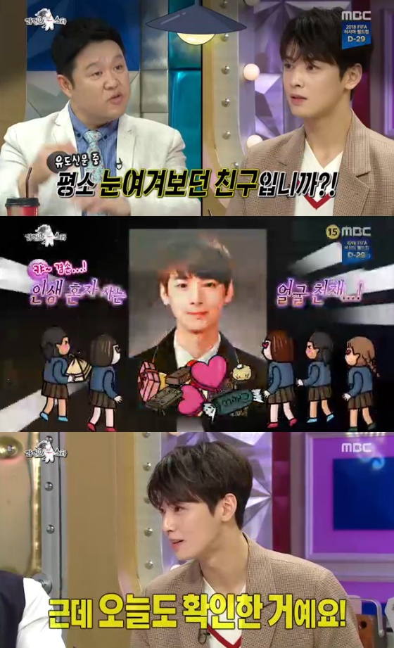 차은우는 16일 방송된 MBC '라디오스타'에 출연해 "지금까지 연애는 한 번 해봤고 대시를 받은 것도 한 번"이라고 말했다.