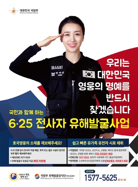 박하선은 "이런 국가적인 중요 사업에 함께 할 수 있어서 무엇보다 영광이다. 전사자 유해가 하루빨리 가족의 품으로 돌아갈 수 있도록 이번 안내서와 포스터가 조금이나마 도움이 됐으면 좋겠다"고 전했다.