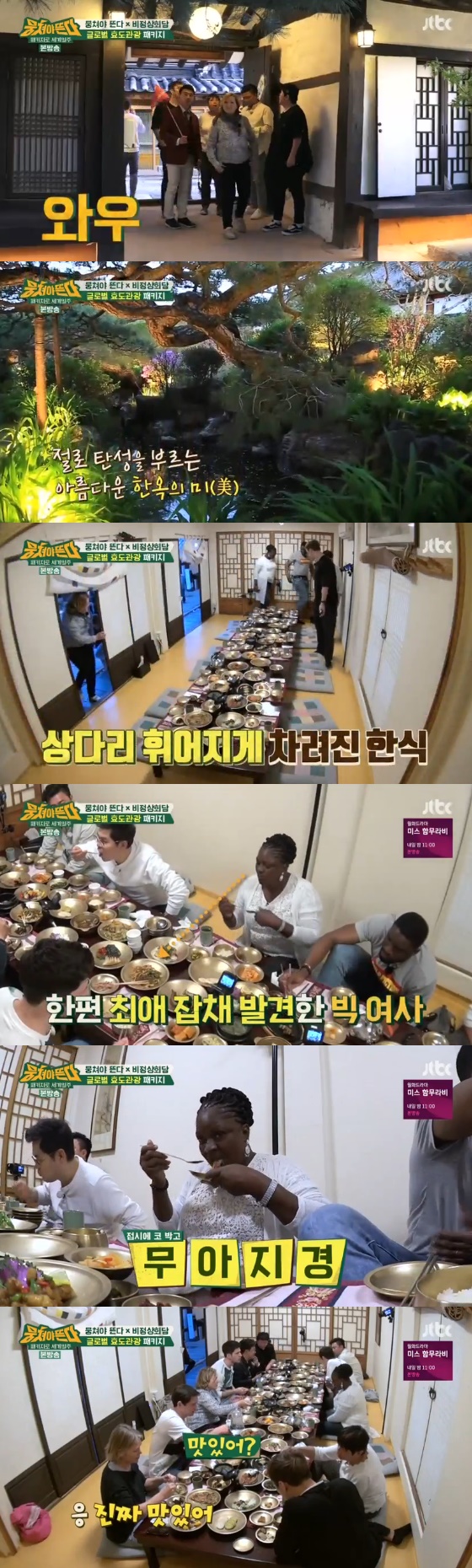 이들은 한식을 맛보기 앞서 고즈넉한 분위기를 뽐내는 한옥에 감탄했다. 이어 상다리 휘어지게 차려진 한식에 어머니들은 "우와"를 연발했다.