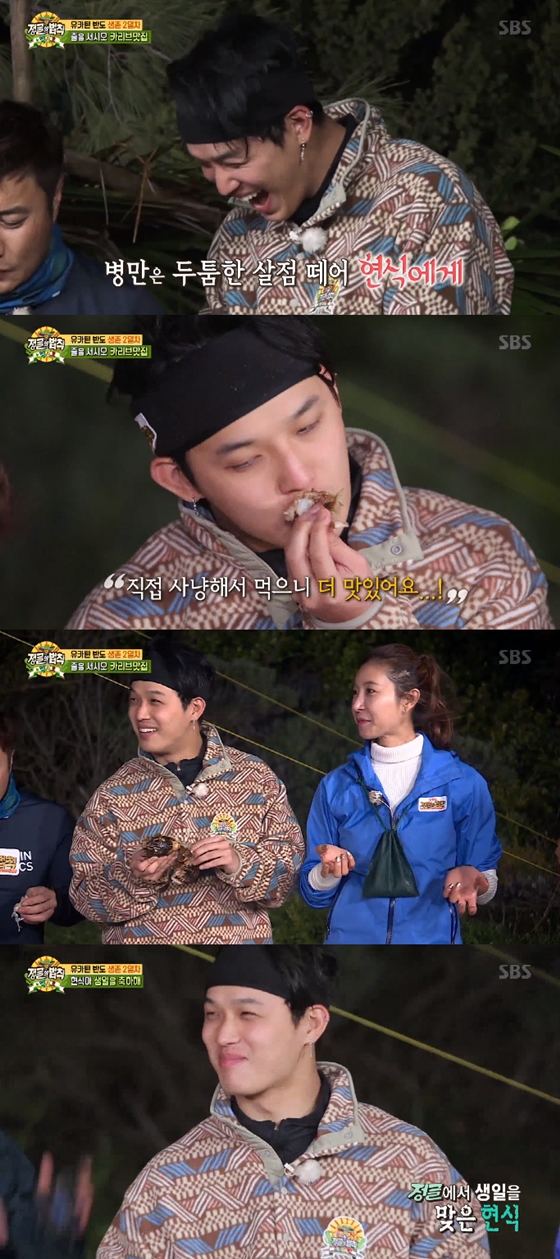 그룹 비투비 멤버 현식이 정글에서 아이돌 체면을 벗어던지고 생선을 뜯었다.