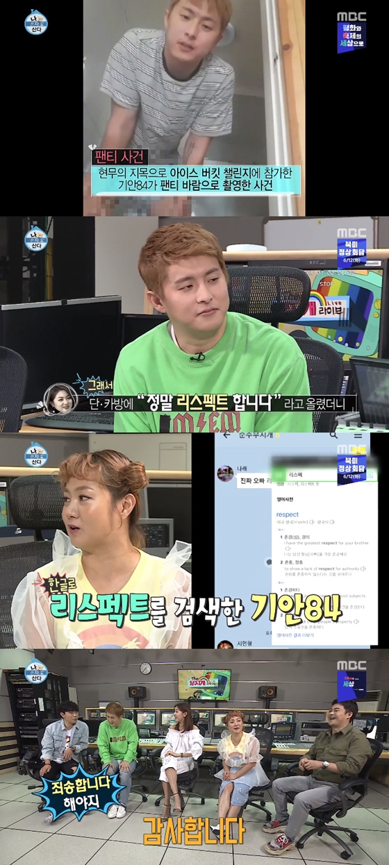 이날 방송에서는 전현무, 박나래 등이 기안84의 아이스버킷 챌린지를 하면서 속옷을 착용한 채로 한 것을 두고 사과하라고 했다. 박나래는 '나 혼자 산다'의 단체 대화방에 이 같은 소식을 알렸다고 털어놓기도 했다.