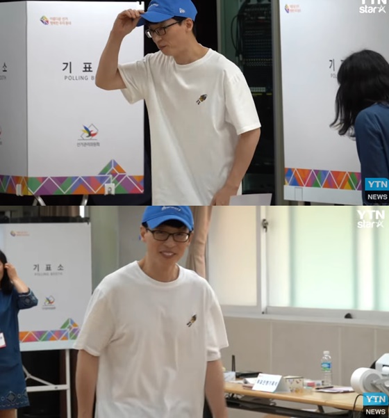13일 민경욱 의원은 자신의 페이스북에 한 네티즌이 올린 유재석 사진을 공유했다. 해당 사진은 유재석이 지난 8일 사전 투표소에서 투표를 하는 모습이다.