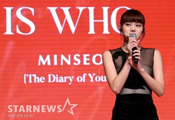 민서는 20일 오후 서울 강남구 일지아트홀에서 열린 데뷔 프로젝트의 타이틀이자 세 번째 곡 'Is Who' 발매 기념 쇼케이스에서 이같이 말했다.