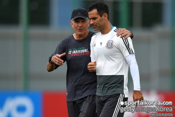 [스포탈코리아] 한재현 기자= 신태용호 2번째 상대인 멕시코 베테랑 수비수 라파엘 마르케스가 팀 내에서 유일하게 스폰서 없는 트레이닝 복을 입고 있다.