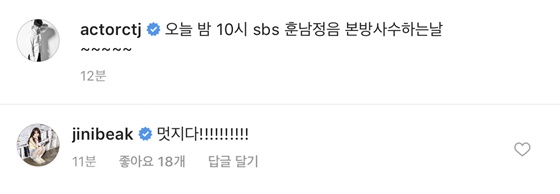 또한 배우 백진희도 최태준이 게재한 게시물에 "멋지다!!"라는 댓글을 달기도 했다. 최태준과 백진희는 지난해 1월 방송된 MBC 수목드라마 '미씽나인'에서 호흡을 맞춘 바 있다.