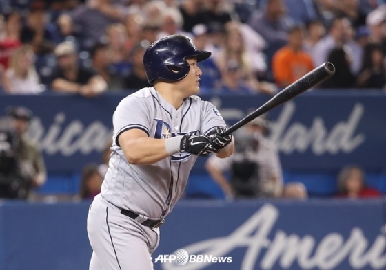 최지만은 5일(이하 한국시간) 캐나다 온타리오 주 토론토의 로저스 센터에서 열린 '2018 메이저리그' 정규시즌 토론토전에서 7회 대타로 출전해 타점 2루타를 터뜨렸다.