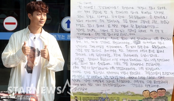 군 입대한 그룹 하이라이트 윤두준이 자필편지로 팬들에게 인사를 전했다.