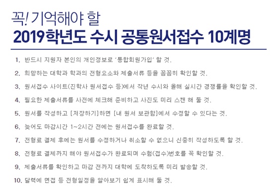 2019 수시 원서접수와 관련한 자세한 사항은 유웨이어플라이, 진학사어플라이를 통해 확인하면 된다.