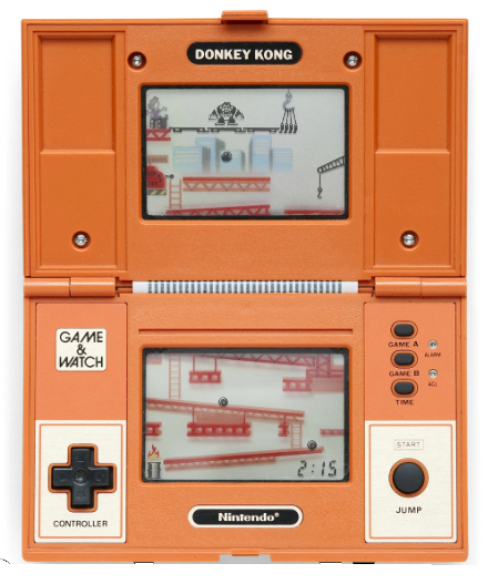 그리고 '휴대용 게임기'하면 역시 닌텐도를 빼 놓을 수 없습니다. 7080 시절에도 당연히 닌텐도가 압도적인 인기를 자랑했습니다. 당시 'GAME & WATCH' 게임기에는 닌텐도의 대표 캐릭터가 등장하는 작품이 많았습니다. ‘동키콩’도 대표적인 타이틀 중 하나입니다. 그런가 하면 닌텐도의 대표 캐릭터 '마리오(MARIO BROS)'는 스타일이 조금 달랐습니다. 위아래가 아니라 좌우로 접는 방식이 독특하네요.