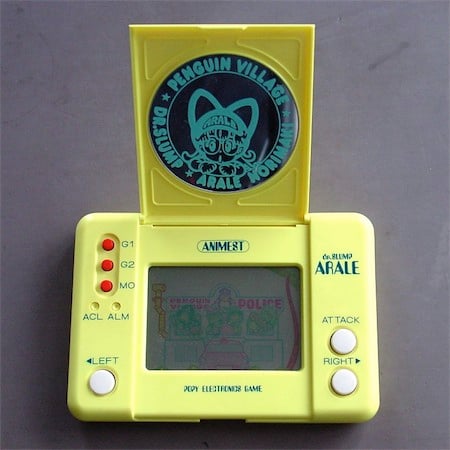 재미있는 점은 카시오나 닌텐도 외에도 다양한 제조사에서 오락기 사업에 관심을 보였다는 것입니다. 카시오도 독특한 사례지만, 반다이도 게임기 제조 사업에 뛰어들었었죠. 7080 시절에 아래와 같은 접이식 게임기를 내놓는 경우가 많았습니다. POPY(BANDAI)의 '닥터슬럼프(DR.SLUMP)'는 게임기의 색과 게임을 바꾼 '아라레(ARARE)'시리즈도 있네요.