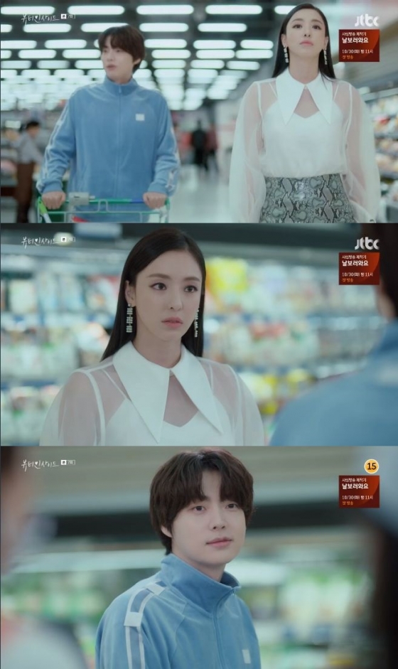 22일 방송된 종합편성채널 JTBC 월화드라마 '뷰티 인사이드'(극본 임메아리, 연출 송현욱)에서 강사라(이다희 분)와 안재현(류은호 분)이 함께 장을 보는 장면이 그려졌다.
