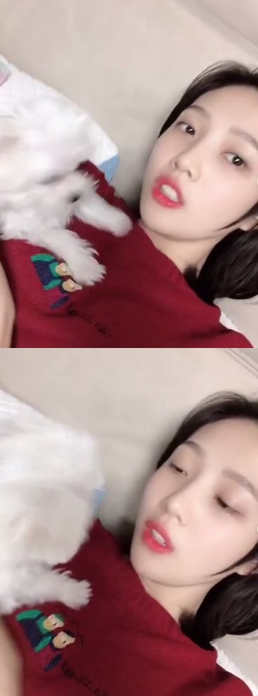 걸그룹 레드벨벳 멤버 조이가 반려견 햇님과 함께 한 영상을 공개했다.