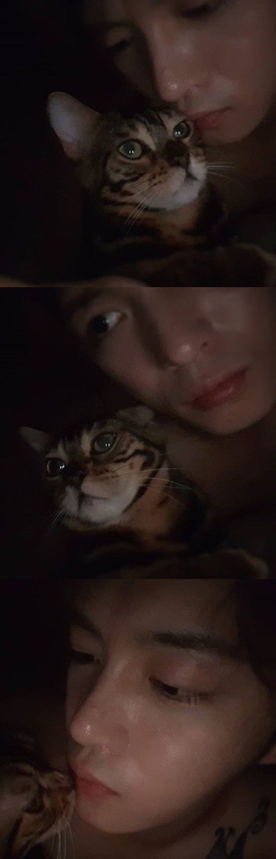 공개된 사진 속 김재중은 반려묘를 끌어안고 안식을 취하는 모습이다. 어둠 속에도 빛나는 외모를 자랑해 눈길을 끌었다.