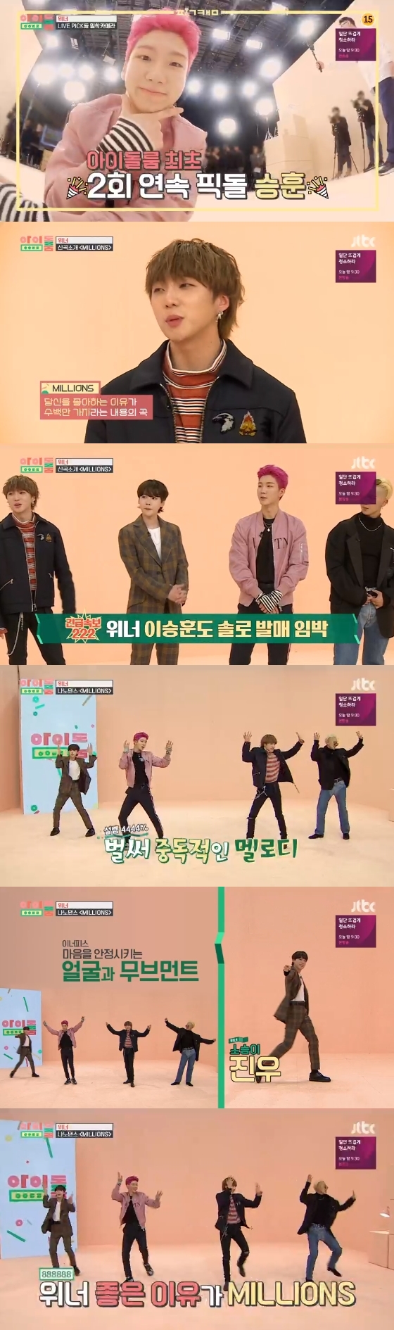 18일 오후 방송된 종합편성채널 JTBC 예능 프로그램 '아이돌룸'에서는 신곡 'MILLIONS(밀리언즈)'를 공개한 위너 멤버들의 모습이 그려졌다.