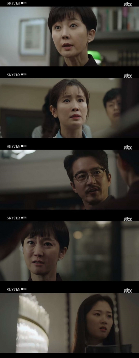 22일 오후 방송된 JTBC 금토드라마 'SKY캐슬'(극본 유현미, 연출 조현탁) 10화에서 이수임(이태란 분)이 캐슬 주민이 모두 모인 자리에서 한서진(염정아 분)의 비밀을 폭로했다.