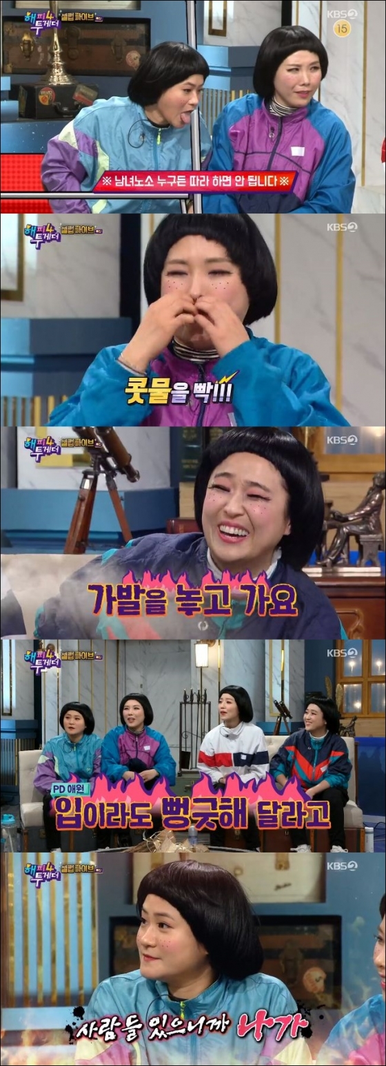 3일 오후 방송된 KBS 2TV 예능프로그램 '해피투게더4'에서 걸 그룹 셀럽파이브 멤버 송은이, 김신영, 신봉선, 안영미가 게스트로 등장했다.