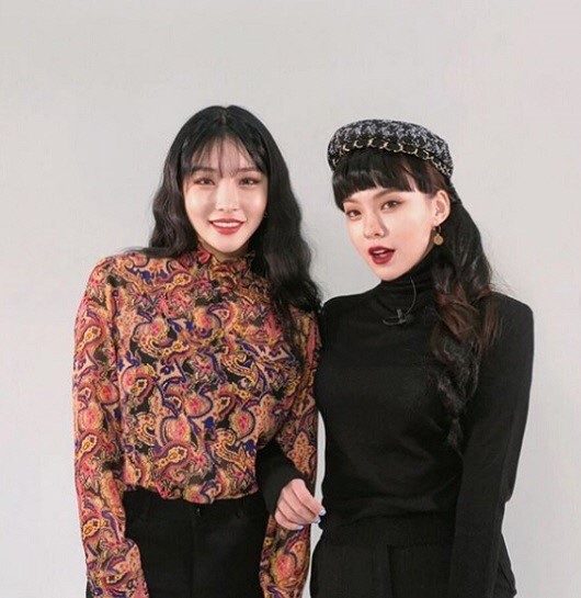 공개된 사진 속 하늘과 청하는 팔짱을 낀 채 다정하게 카메라를 응시했다. 특히 두사람은 비슷한 메이크업으로 닮은꼴 외모를 뽐냈다.