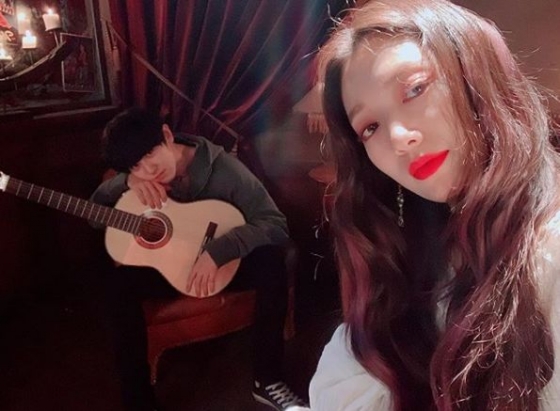사진 속 박신혜는 도도한 표정으로 카메라를 바라봤다. 뒤에서 기타를 들고 장난스레 포즈를 취한 찬열이 눈길을 끈다.