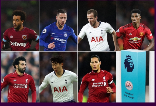 손흥민을 비롯해 펠리페 안데르손(웨스트햄·4골 1도움), 에당 아자르(첼시·3골 5도움), 해리 케인(토트넘·6골 2도움), 마커스 래쉬포드(맨체스터 유나이티드·3골 5도움), 모하메드 살라(6골 4도움), 버질 판 다이크(이상 리버풀·1골 1도움 4차례 무실점 경기)가 '이달의 선수상' 후보에 나란히 이름을 올렸다.